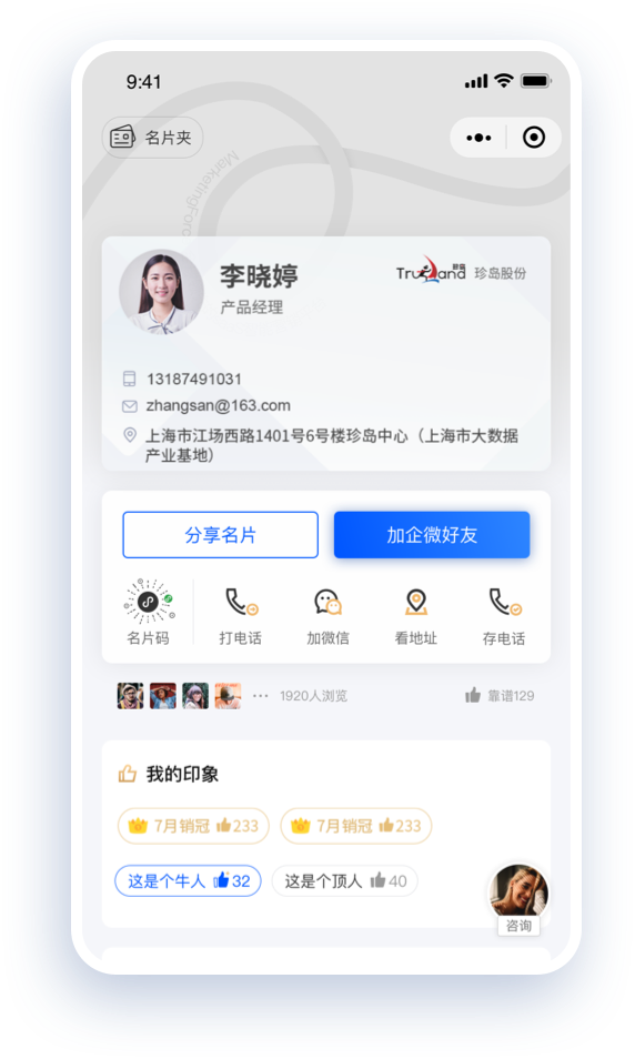 全方位展示个人、公司、商品信息,提升自己和企业的专业形象